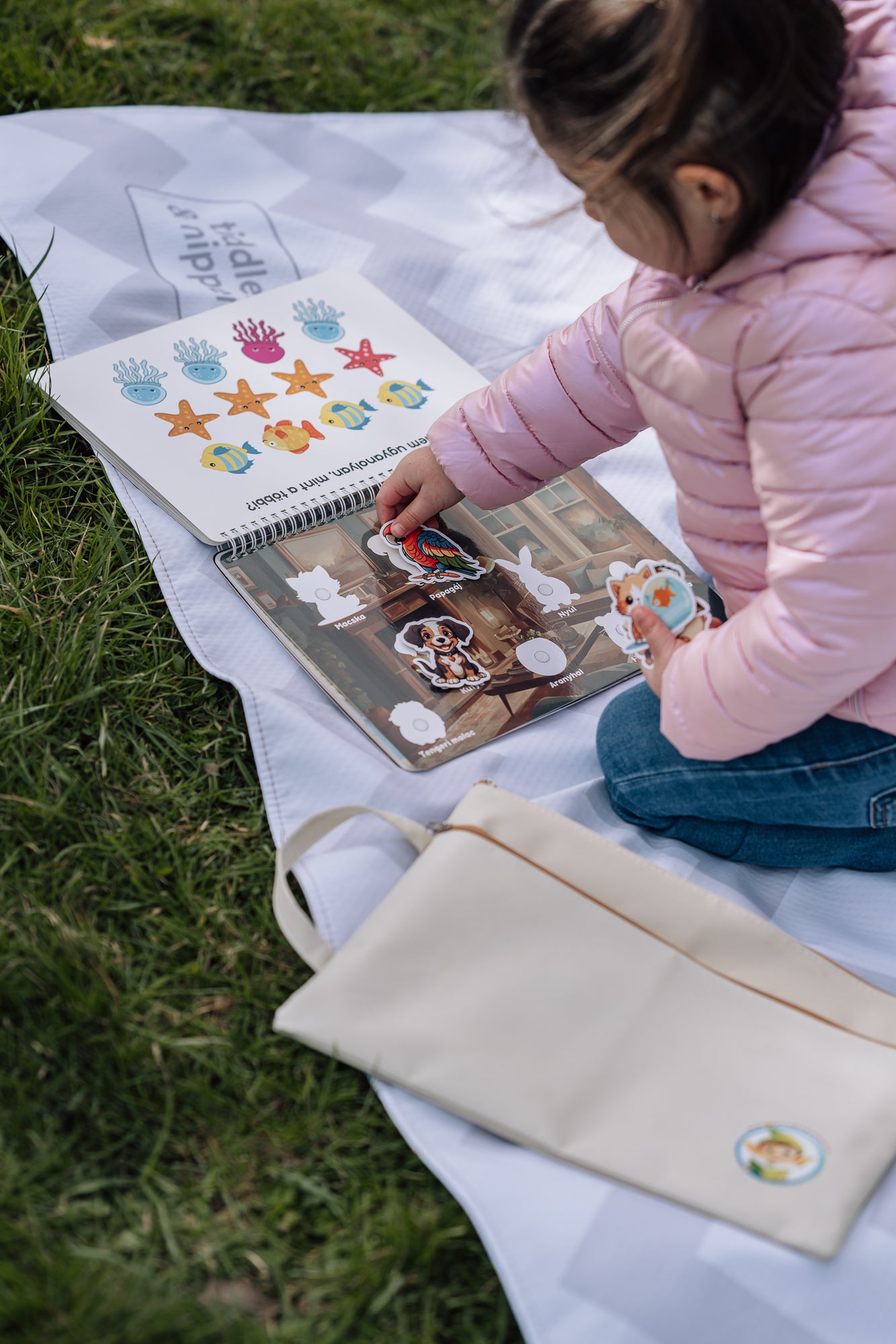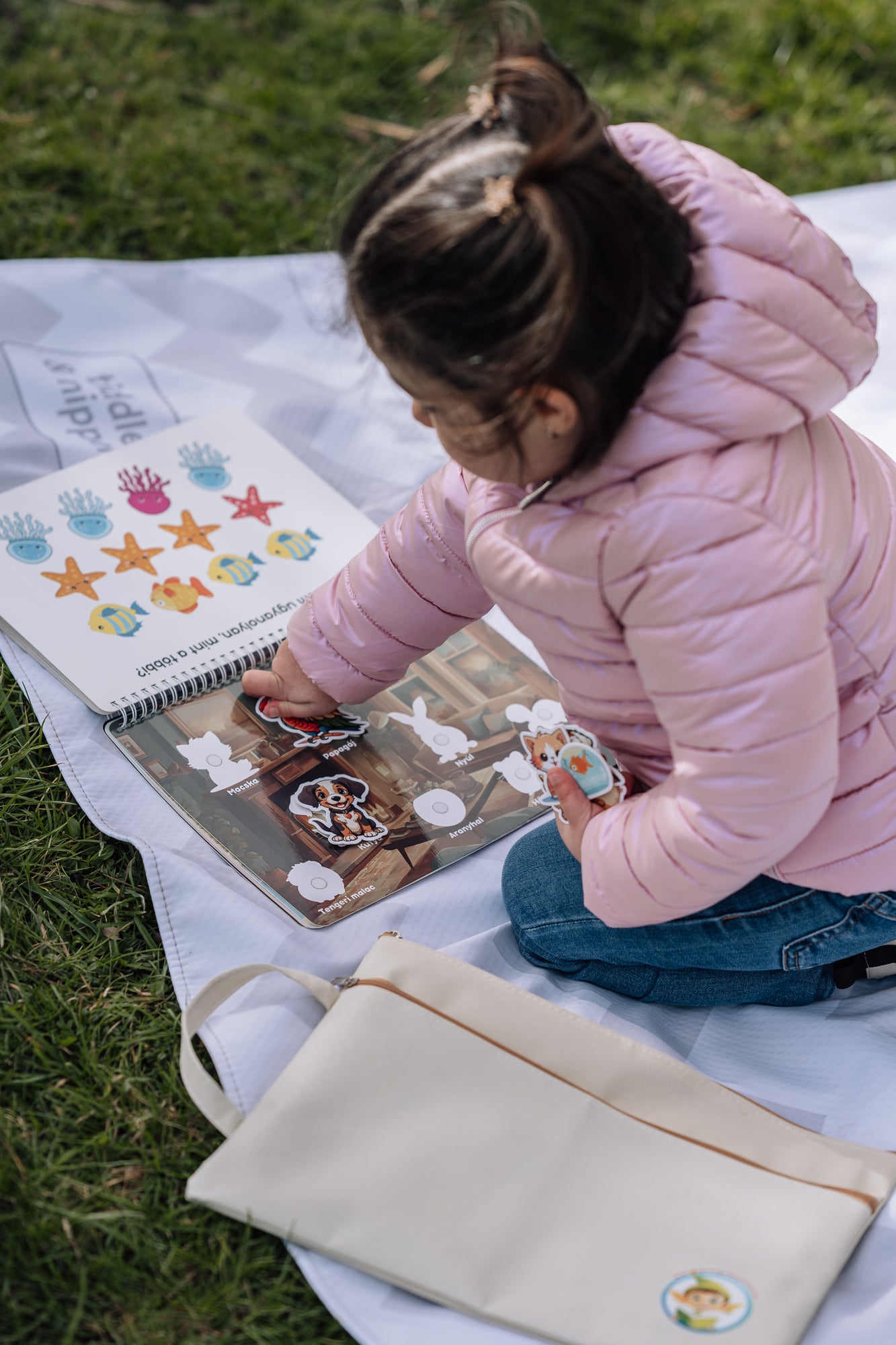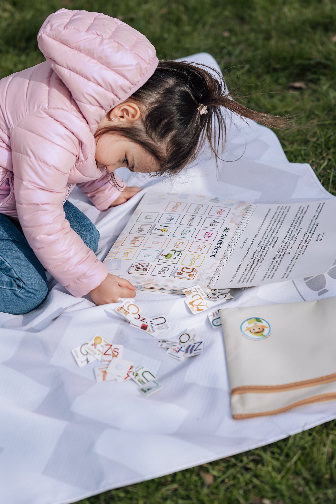 Our little girl proudly carries the Tanuló Manó Busy Book, where all her favourite activities are collected together. We added a matching bag as well so you can take it with you anywhere you go. Each item has its own bag inside, and we’ve also included